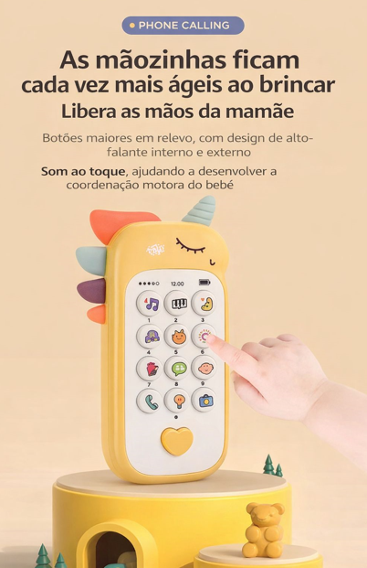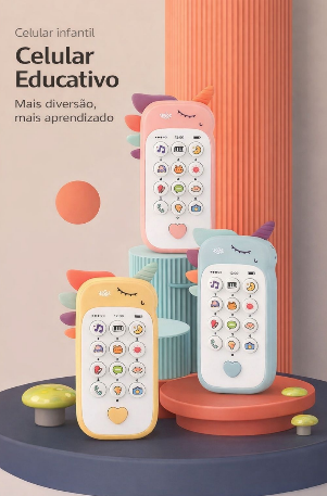 Este celular musical interativo foi desenvolvido para estimular o bebê enquanto ele brinca, com sons, cores e texturas que despertam a curiosidade desde cedo.